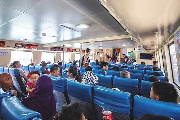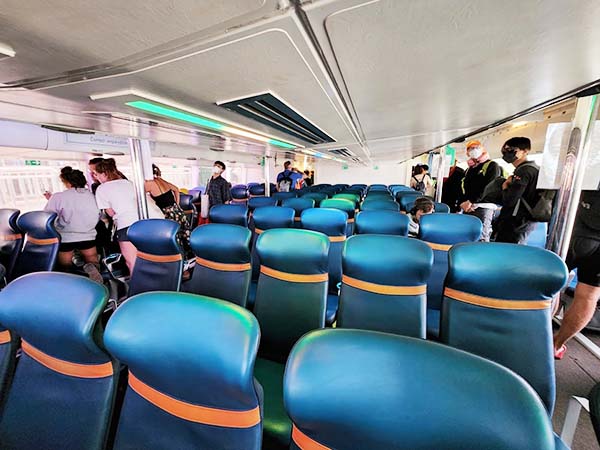 Bluewater is an older ferry that feels like its age. The ambience on Bluewater is akin to taking a bus, especially when it gets crowded and there are no assigned seatings.